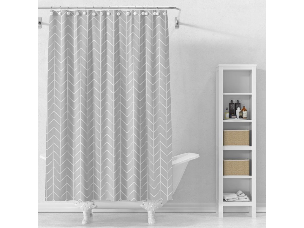 Sprchový závěs 180x180cm, vinyl, šedá, geometrie