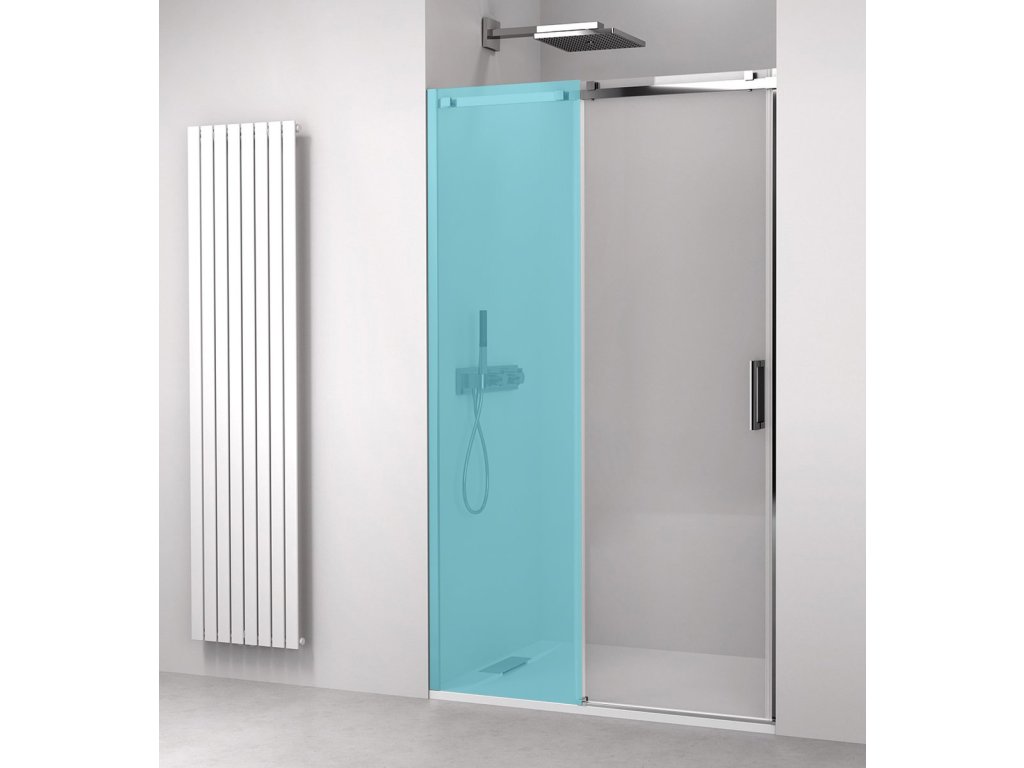 - Sklo dveří je volně zavěšené bez spodního vodícího profilu
