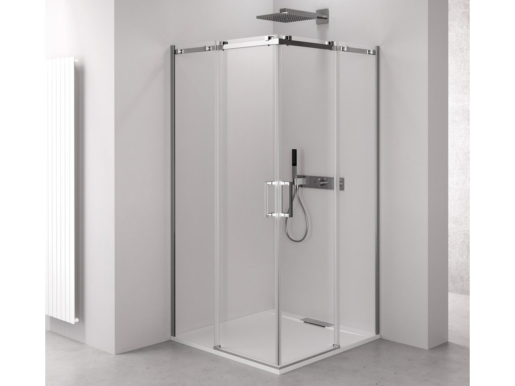 THRON SQUARE čtvercový sprchový kout 1000x1000mm, hranaté pojezdy, rohový vstup