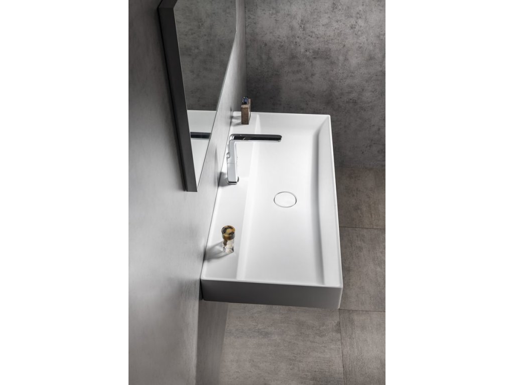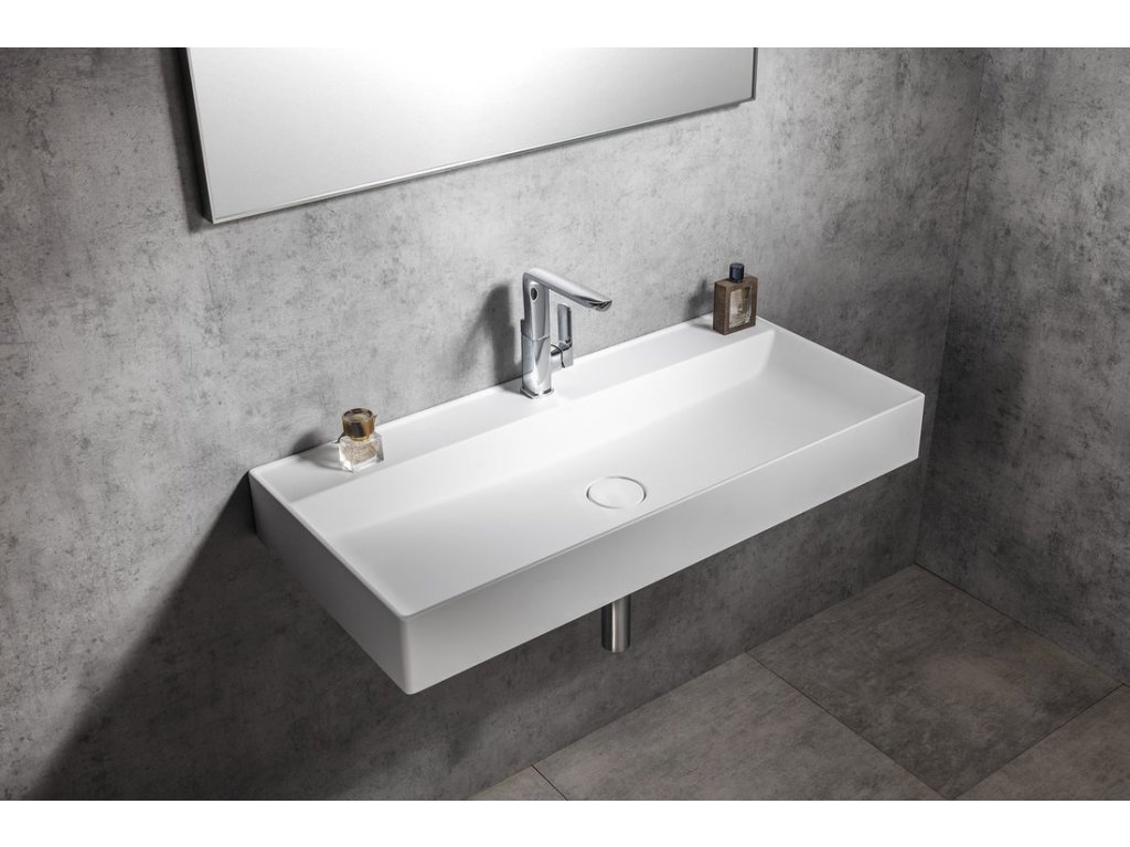 TWIG umyvadlo, litý mramor, 100x47cm, kryt výpusti, bílá