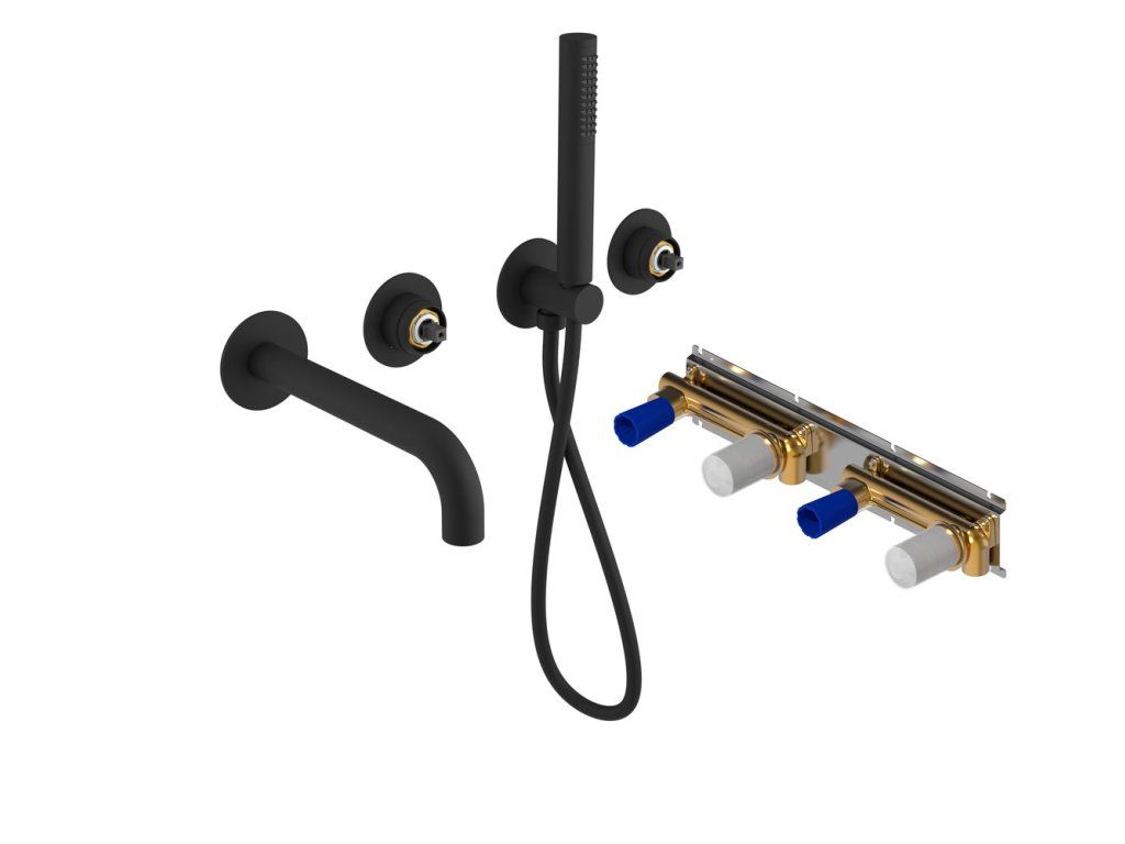 ULTRAMIX tělo podomítkové vanové baterie s hubicí a ruční sprchou, 2 výstupy, černá mat