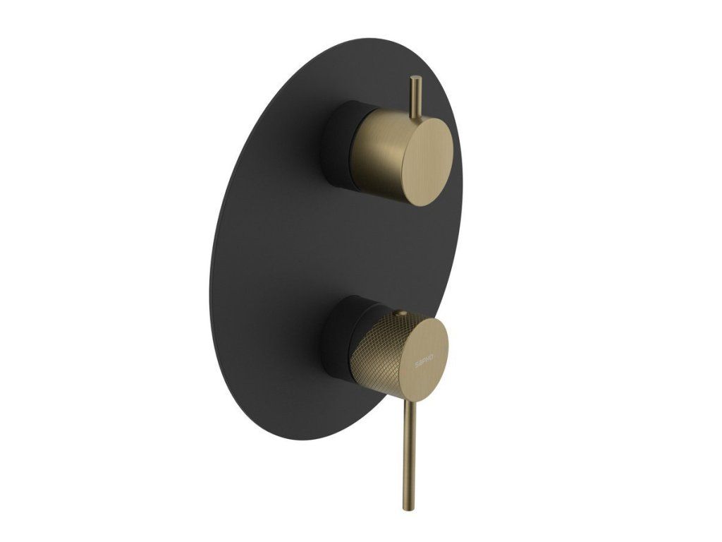ULTRASAN podomítková sprchová baterie, 3 výstupy, otočný přepínač, černá mat/zlato mat