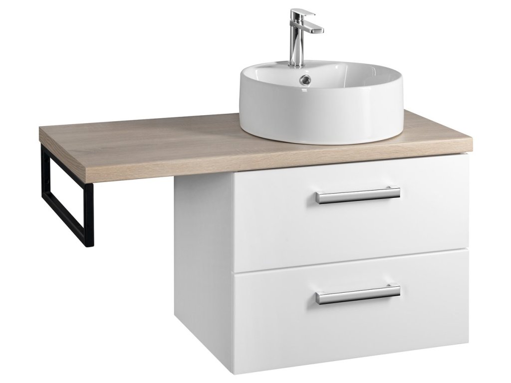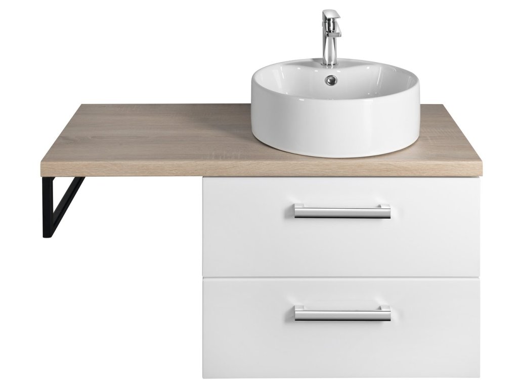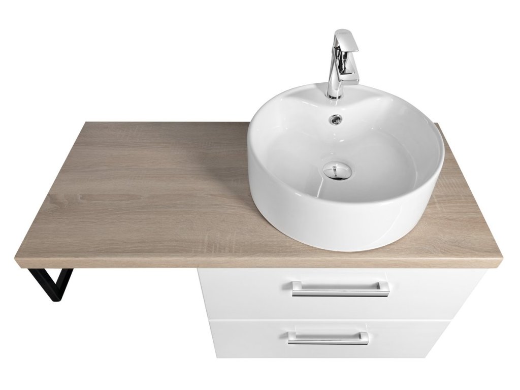 Koupelnový nábytek VEGA s deskou VEGA (HPL) v dekoru dub platin lze kombinovat s umyvadly na postavení.