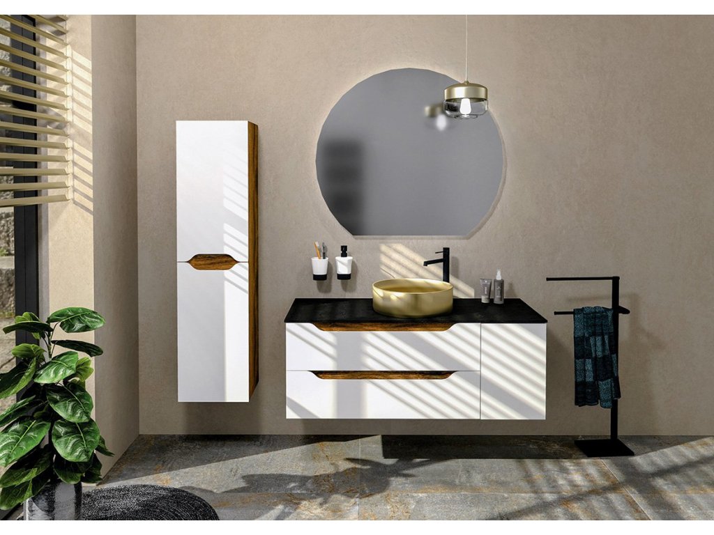 WAVE nabízíme v šesti variantách šířek umyvadlových skříněk, včetně dvojumyvadlových. Na skříňky lze použít i desky z Rockstonu, z kompozitu (HPL laminát) nebo AVICE desku a vybrat si ze široké nabídky umyvadel na postavení. V nabídce jsou i doplňkové vysoké skříňky, které společně s umyvadlovou skříňkou tvoří harmonický celek.